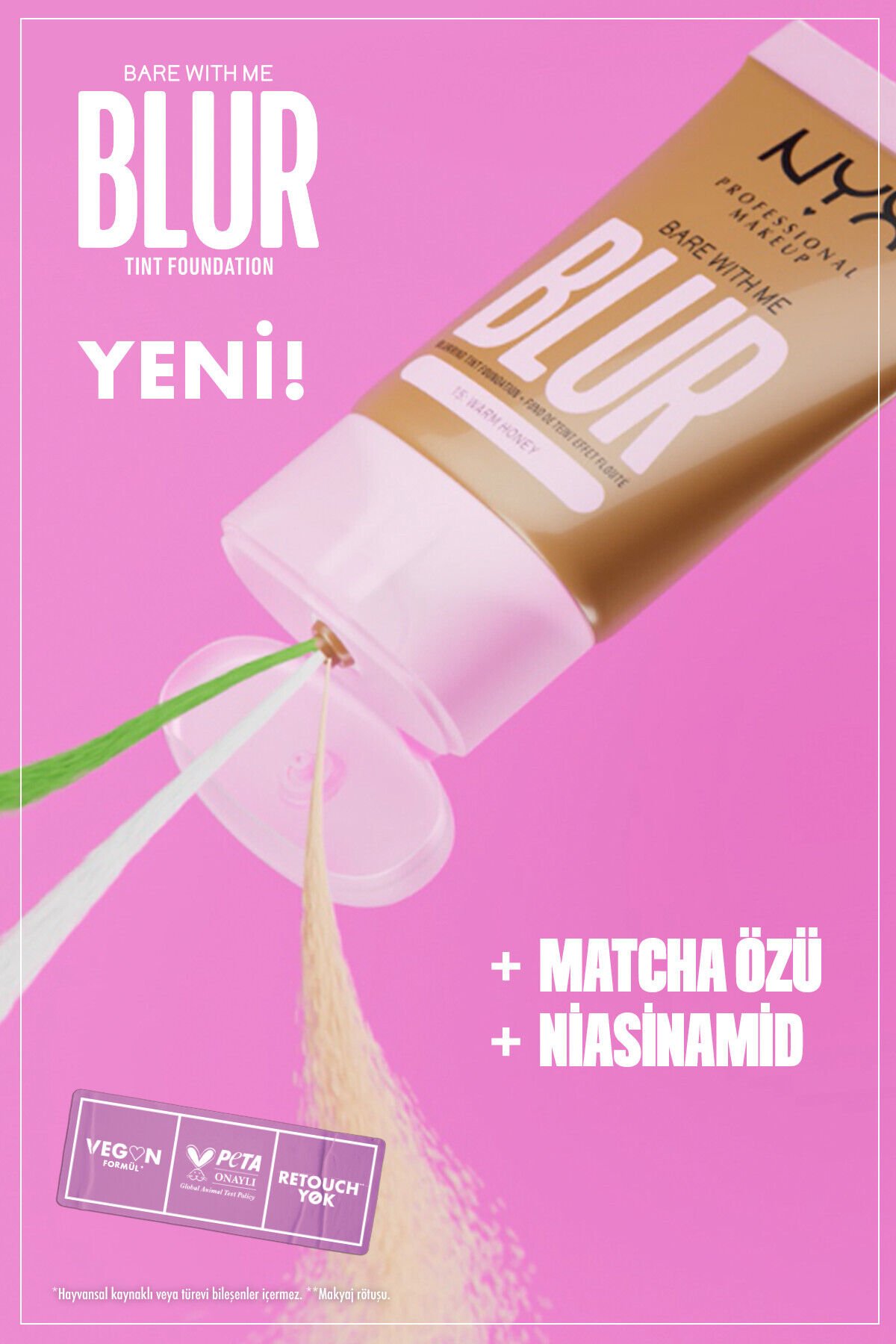 NYX Professional Makeup’tan cildi pürüzsüzleştiren yeni Blur Tint Fondöten! Ciltte filtre etkisi 12 saate kadar nemlendirir; 16 saate kadar kalıcı; Matcha özü ve niasinamid içeren formül Ayarlanabilir kapatıcılık Doğal görünüm; Instrumental test; Kişisel değerlendirme, 122 kişi;