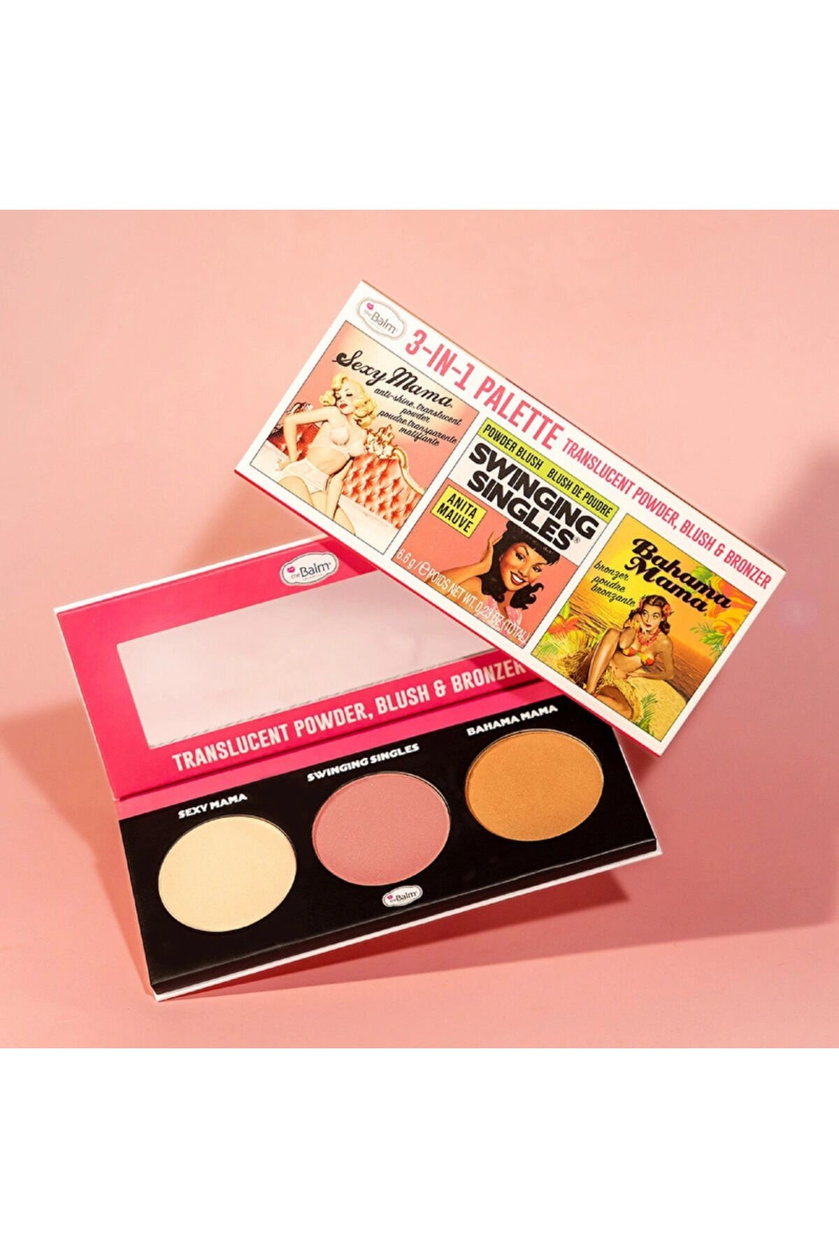 theBalm Powder Trio Yüz Paleti İster tam bir glam görünümü yaratıyor olun, ister hızlı bir dokunuşa ihtiyaç duyun, bu 3'ü 1 arada palet her şeyi sizin için bir araya getiriyor ve kusursuz bir görünüm için vazgeçilmeziniz olacak.; Palet, parlamayı kontrol altına alan Sexy Mama şeffaf pudra, her cilt tonuna yakışan, hafif ışıltılı Swinging Singles Allık "Anita Mauve" ve mükemmel bir güneş öpücüğü etkisi yaratan ikonik Bahama Mama Bronzer içeriyor.; Dağınık makyaj çantalarına elveda, pratik ve zahmetsiz güzelliğe merhaba deyin!